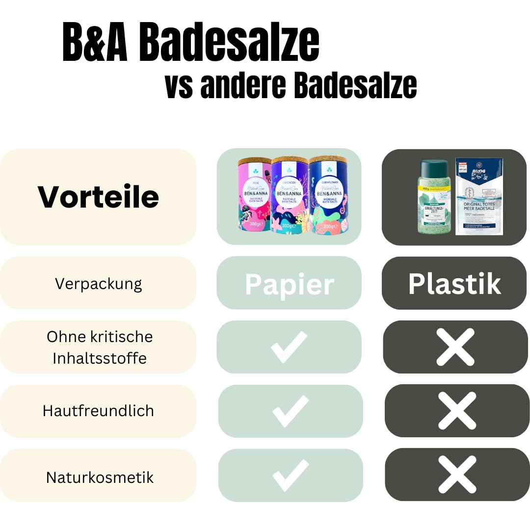 Ben & Anna Premium Cornflower Bath Salts – Muskelentspannung, Kornblume, 300 g