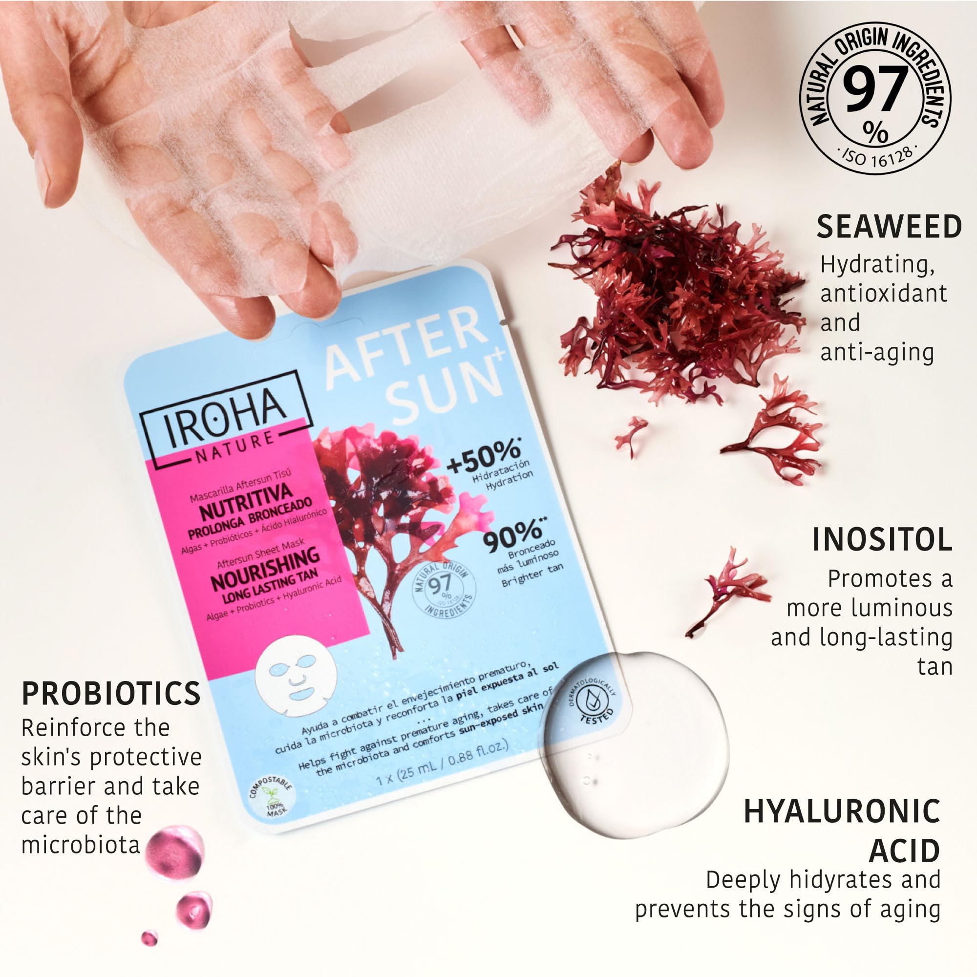 Iroha Nature Aftersun Face Mask – Algen, Probiotics, Hyaluronic Acid – Anti-Aging 25 ml